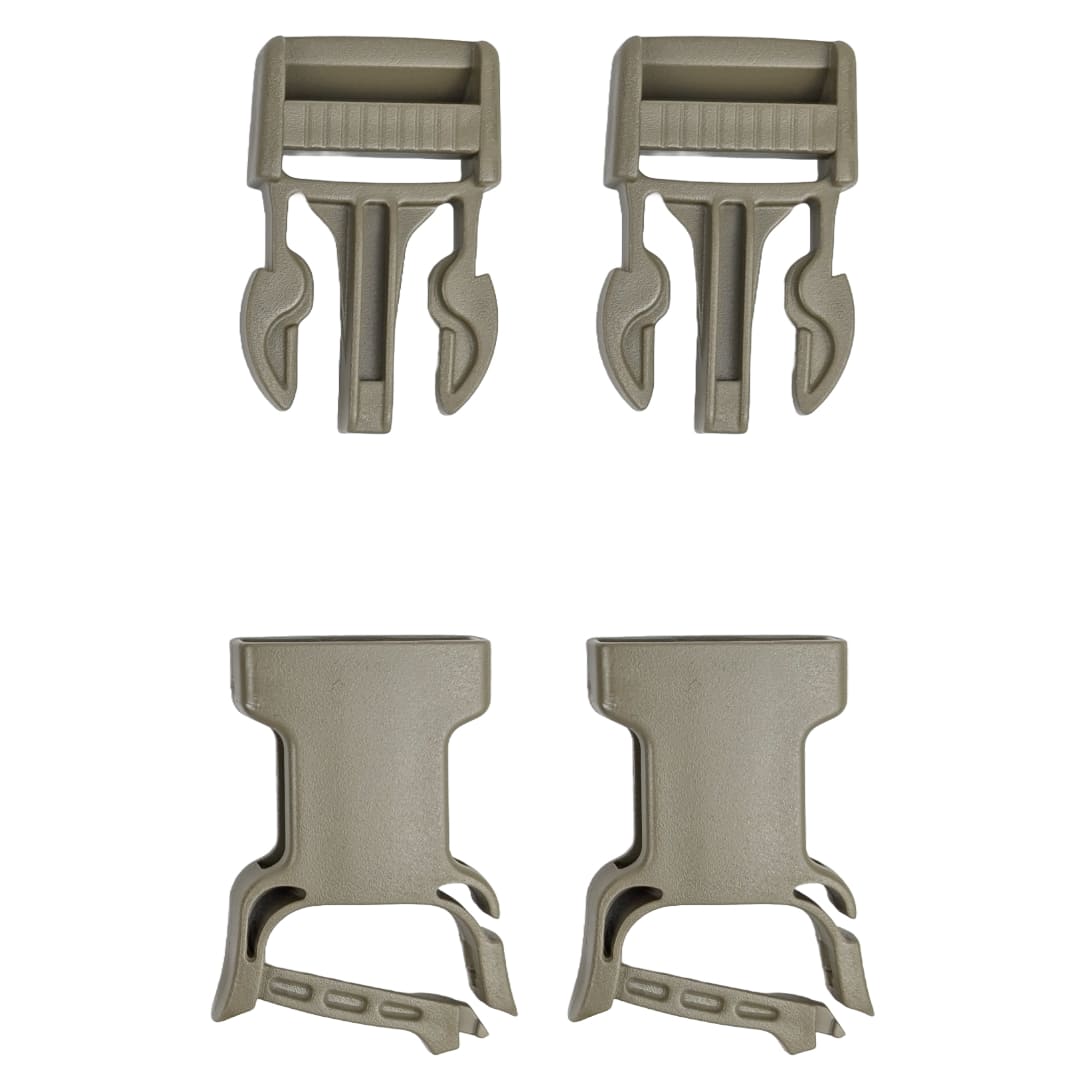 WB25 Female Click-In 2M Warrior-Series 25 mm (1.00") + WB25 Male Ladderloc 2M Warrior-Series 25 mm (1.00"). The fastener belongs to MILITARY COMPONENTS and has NIR/IRR treated to prevent detection in night vision systems (NVS).